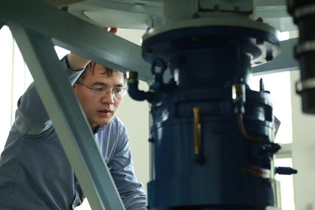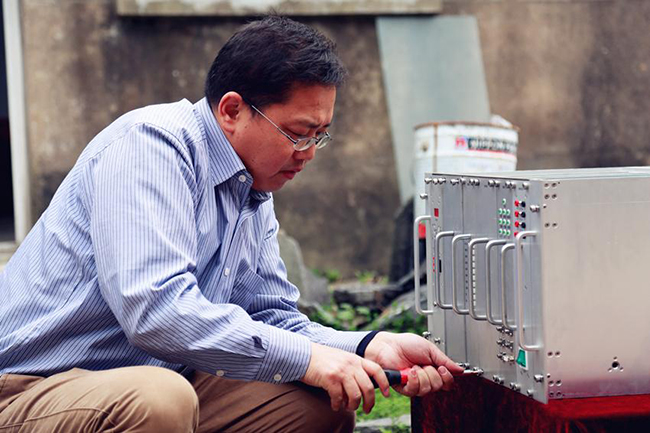 雷達(dá)事業(yè)部牛忠文正在進(jìn)行機(jī)動(dòng)式航管雷達(dá)轉(zhuǎn)臺(tái)安裝