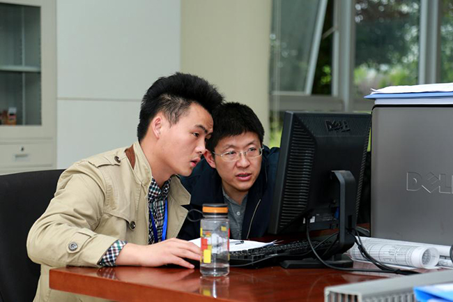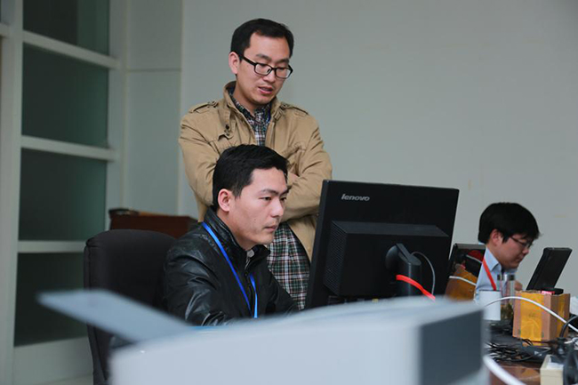 雷達(dá)事業(yè)部周小貴與夏智輝正在為某型雷達(dá)進(jìn)行軟件測(cè)試