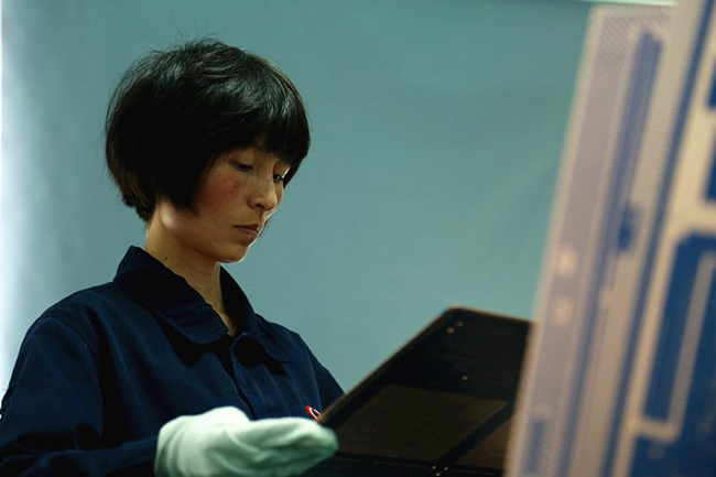 精密電路事業(yè)部陳娟正在對(duì)產(chǎn)品生產(chǎn)過(guò)程進(jìn)行表觀檢查