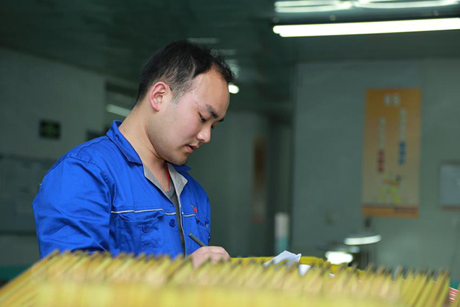 精密電路事業(yè)部宋照杰正在清點(diǎn)上下工序交接板子的數(shù)量