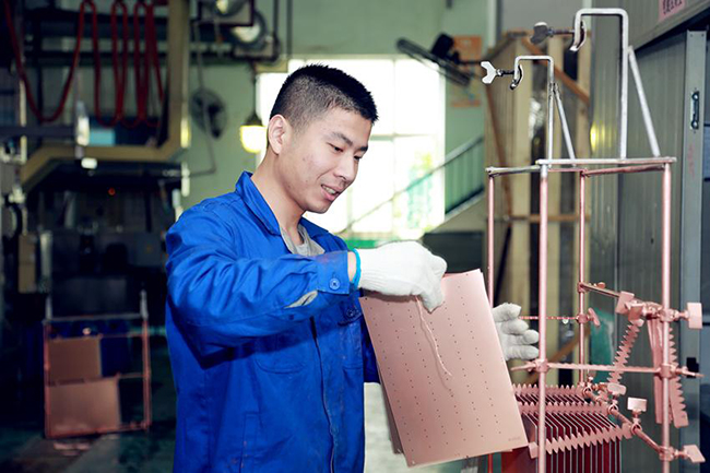 精密電路事業(yè)部李健文正在為板子上架“孔化”準(zhǔn)備