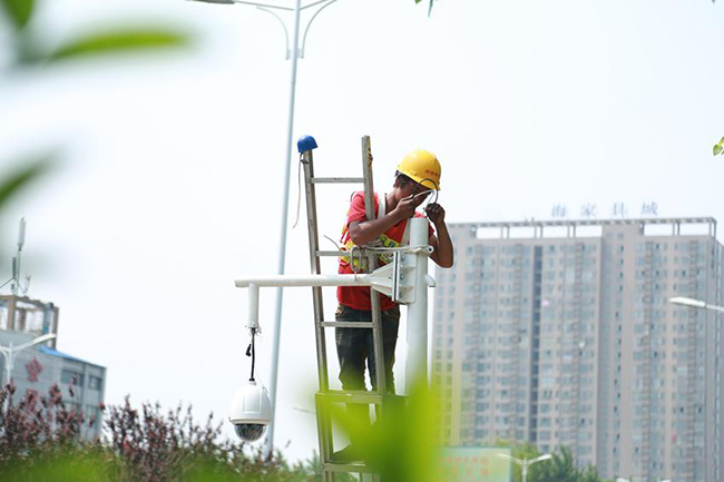 平安合肥項(xiàng)目部工作人員正在外場(chǎng)安裝調(diào)試攝像機(jī)