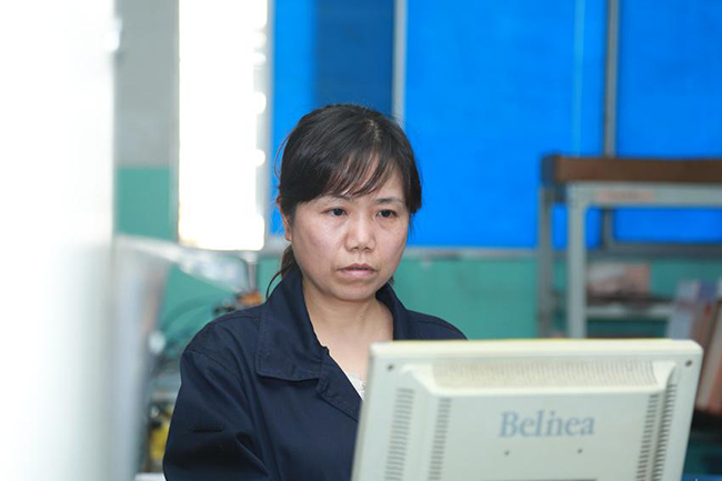 精密電路事業(yè)部楊玲正在對(duì)板子“鉆孔”前調(diào)集數(shù)據(jù)