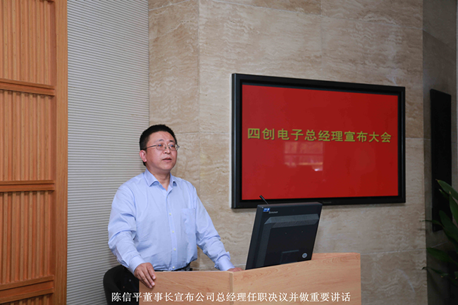 宣布大會上,新任四創(chuàng)公司總經(jīng)理何啟躍做了任職講話。他表示四創(chuàng)電子在董事會的領(lǐng)導(dǎo)下,在全體員工和領(lǐng)導(dǎo)的支持和努力下取得了巨大的成績,如何在新的市場下,在新的環(huán)境下實現(xiàn)騰飛發(fā)展,是一個重大的考驗。任重而道遠(yuǎn),今后將兢兢業(yè)業(yè),恪盡職守,和大家一起,努力地實現(xiàn)董事會提出的戰(zhàn)略目標(biāo)。講話最后,何啟躍總經(jīng)理對公司各部門提出了要求并安排了工作任務(wù),同時表示要主動學(xué)習(xí)公司的歷史及未來發(fā)展?fàn)顩r,盡快融入到四創(chuàng)電子,以期達(dá)成董事會對公司的目標(biāo)和期望。
