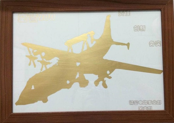 “責(zé)任”代表我們時(shí)刻牢記身肩國(guó)防重任;“創(chuàng)新”突出了本次創(chuàng)新文化大賽的內(nèi)涵,同時(shí)也代我們印制板人在探索印制板制作技術(shù)上不斷創(chuàng)新的精神;“務(wù)實(shí)”代表印制板人腳踏實(shí)地,一步一個(gè)腳印的走在行業(yè)引導(dǎo)地位?!坝≈瓢瀹?huà)”作品創(chuàng)新運(yùn)用38所重點(diǎn)產(chǎn)品圖片代替?zhèn)鹘y(tǒng)的線(xiàn)路圖形,并用印制板生產(chǎn)工藝加工成型。