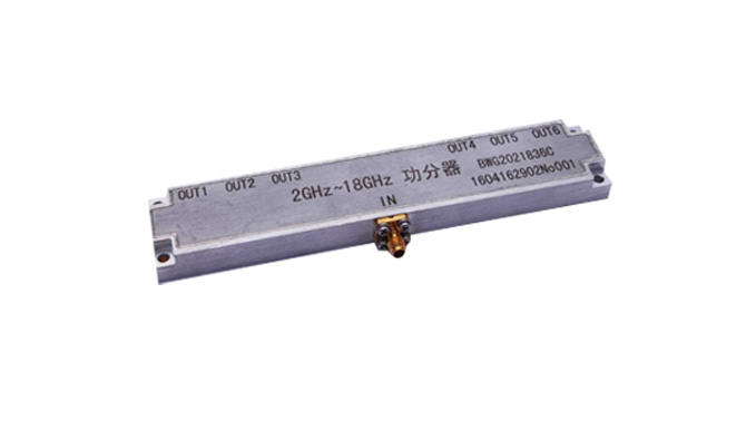 產(chǎn)品功能:實現(xiàn)2GHz~18GHz寬頻段信號1:6功分。